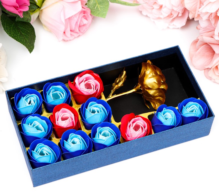 —Мыльные розочки цветных оттенков и золотая роза, (12 шт;уп), 6962321