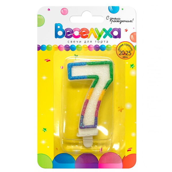 —Свеча для торта 'Цифра 7. Разноцветный градиент' с глиттером, картон. уп., европодвес,620086-7