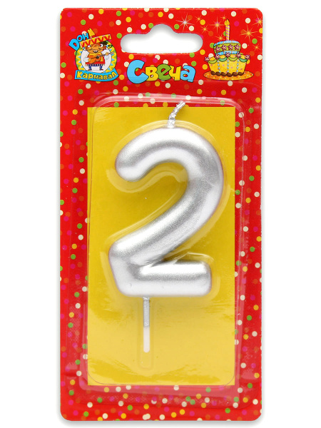 —Свеча для торта 'Цифра 2. Серебряная' Миленд, картон. уп., европодвес, С-1810